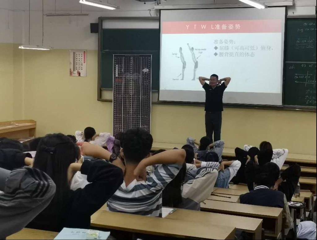 朱元明从“肩关节运动的功能解剖学原理”“YTWL肩关节字母操”、“颈肩部相关肌肉的牵伸”“颈、肩、胸、背部相关肌肉的泡沫轴放松方法”四个方面向同学们普及科学健身知识。