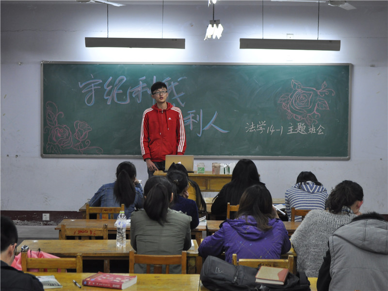 本次班会以“守纪利我,自律利人”为主题。班会伊始,各班班长对本次班会主题做了详细的阐述,并着重强调了请假与考勤等问题。紧接着,各班团支书、学习委员、组织委员等班委陆续走上讲台,以《学生手册》为基础,分别论述了团员自律、学习自律、组织自律及宿舍自律的重要性,引导同学们遵守校规校纪,加强自律。秘书学14—1班更是引出自律典型,同学们献歌祝贺,现场气氛活跃。随后,各班同学围绕这一主题积极发言,进一步深化了对守纪自律的认识与理解。最后,各班班会在班长的总结发言中画上完美句点。