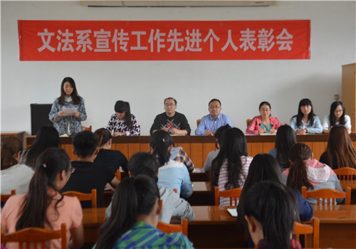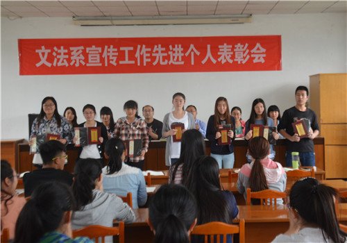 会上,刘明远老师首先宣读2014年度“文法系宣传工作先进个人”名单。随后老师们为先进个人颁发荣誉证书及奖品。