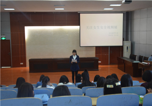 此次活动主要是以视频的形式向同学们重点分析、详细讲解了大学生尤其是女生提高安全意识的重要性和必要性。首先,第一个视频是各地女大学生遭受不法分子侵害的新闻报道,利用真实案例来警示同学们当今社会存在的安全隐患。其次,播放的是当代大学生自制的法制宣传微电影,通过大学生们亲身演绎,使同学们更能感同身受,体会到增强安全意识与提高防范措施的意义和价值。随后,借助幽默风趣的动画MV来告诉同学们在出行、健康、乘车、求职等方面需要注意的潜在风险,在轻松愉悦的氛围下更加深了同学们对安全的理解与重视。最后,主持人通过对各个视频的总结,提出了不要轻信陌生人,不要单独走夜路,不要晚归、不归,不要搭乘黑车等建议;要管理好自己的行为、控制好自己的情绪,不断提升自我修养、陶冶情操,做自尊、自爱、自立、自强的女大学生!