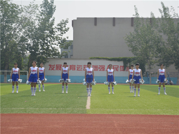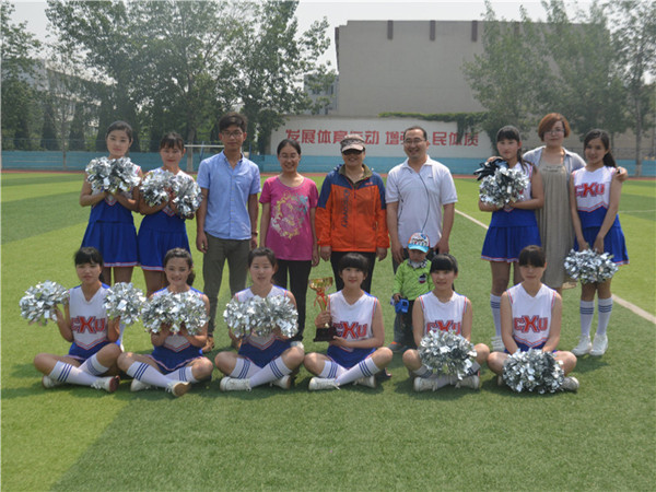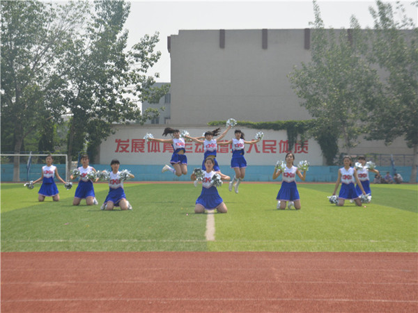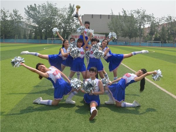 5月12日,山东科技大学泰安校区(泰山科技学院)第二届啦啦操比赛在西校园田径场举行,文法系代表队以97.9的优异成绩摘得冠军奖杯。