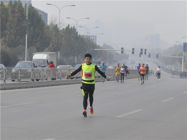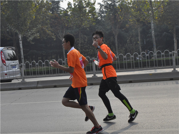 上午七时,各参赛选手已早早来到比赛现场。动感十足的音乐,热辣激情的舞蹈,激扬高亢的欢呼,五彩缤纷的彩旗,让原本紧张严肃的比赛现场变成运动的狂欢天堂。参赛选手首先进行热身运动,摩拳擦掌,为比赛做最后的准备。八点三十分,发令枪响起,选手们如离弦之箭,欢呼雀跃地迈着矫健的步伐正式踏上马拉松之旅。全程比赛中,参赛选手用顽强不屈、坚持不懈的精神坚持到最后。苏老师和蓝罡一路更是高歌猛进,用毅力和坚韧挑战着自己的生理和心理的极限,用高昂的竞技斗志、饱满的精神风貌努力成为自己心中的强者。5公里的迷你马拉松赛跑更是成为本赛事中最火热的参赛项目。比赛精彩纷呈,选手们都全力以赴,你追我赶,毫不示弱,朝终点飞奔。文法系的参赛选手身穿整齐划一的队服,各个都精神抖擞,斗志昂扬,在跑道上尽情的挥洒着汗水,场上是他们拼搏的身影,场下是文法啦啦队员的一片加油喝彩声。最后,经过激烈角逐,文法系的参赛选手都陆续冲过终点。虽然到后来已经筋疲力尽,但是他们的脸上却依然绽放出喜悦轻松的笑容,长距离的奔跑十分辛苦,但是参赛队员在比赛中体现出的锲而不舍的精神足以让人敬佩。