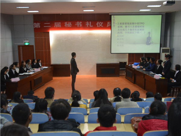 为了普及礼仪知识,丰富课余文化生活,展现当代大学生的风采。11月18日下午,由文法系团总支主办,秘书协会承办的第二届秘书礼仪风采大赛在模拟法庭开展。文法系各学生组织负责人参加了本次活动。
