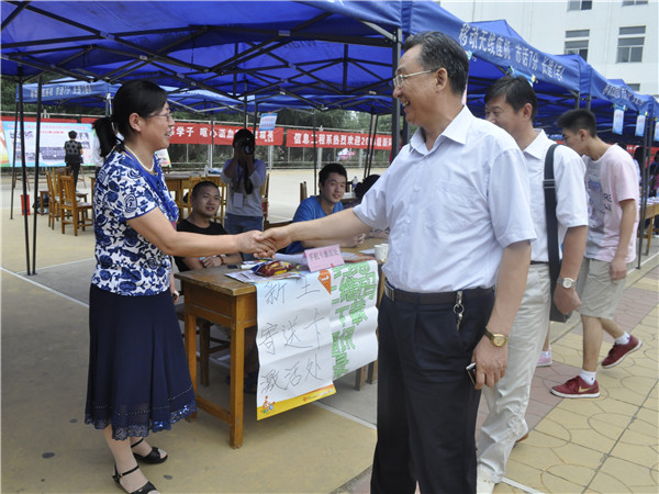 在迎新期间,校区(学院)领导到迎新工作现场进行了视察。系领导随时向辅导员老师了解新生的报到情况,并在文法系“新生家长与系领导交流区”内,与新同学和家长亲切交流,回答解决了新生报到中遇到的问题。让家长放心,让学生满意,充分表现了领导对新同学的关心与爱护。