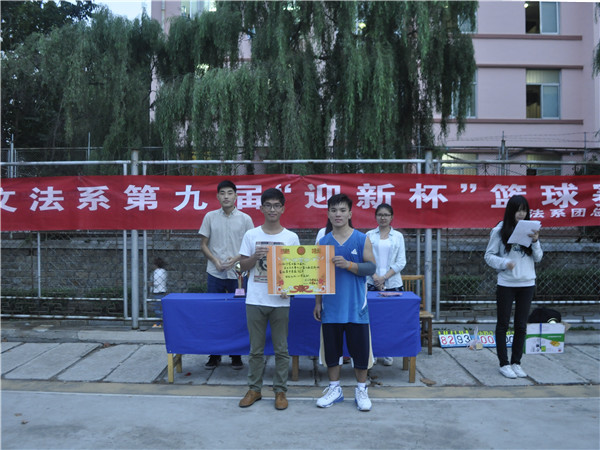 9月26日,文法系第九届“迎新杯” 篮球赛暨闭幕式在礼堂前篮球场打响,学生会主席团和主要干部出席了此次闭幕式。