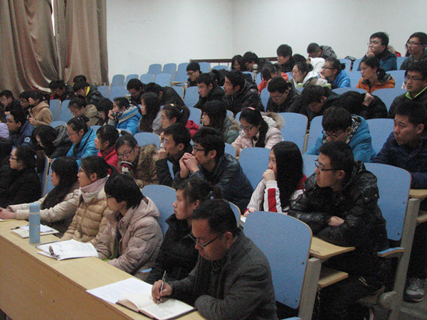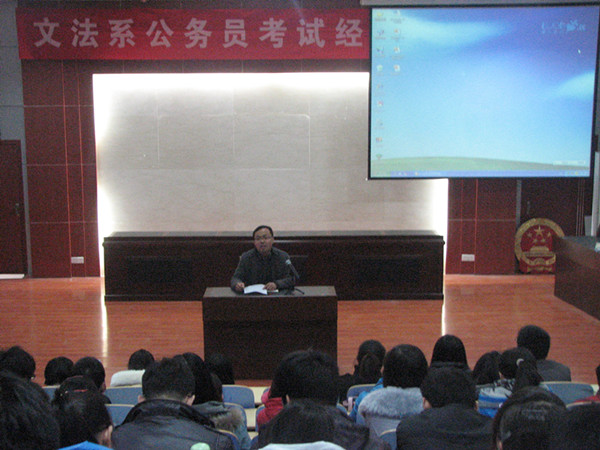 为使同学们在公务员考试中能够准确定位、掌握有效的备考复习方法,12月10日下午,文法系邀请山东地税系统公务员初任培训班的郭潘龙、周景华、于静和王春娇等四位优秀学员向同学们传授公务员考试经验,畅谈心得体会。交流会由文法系团总支书记郭涛林主持,来自各班级和学生组织共130余人参加。