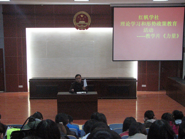 为了进一步做好学生党员和入党积极分子的教育管理工作,加强党性教育,提高政治素养,开展好群众路线实践教育活动,10月30日下午,文法系学生党支部和红帆学社在模拟法庭开展了理论学习和形式政策教育活动。文法系全体学生党员、党员发展对象和入党积极分子共100余人参加了活动。