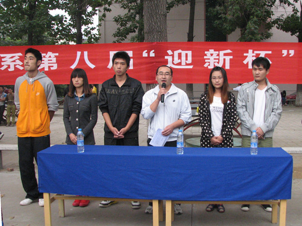 主持人别出心裁的开场白后,团总支刘明远老师对此次“迎新杯”比赛致开幕词,裁判员代表马海伟和运动员代表王野分别发言后,刘老师宣布比赛正式开始。文法系啦啦队献上精彩的啦啦操舞蹈,洋溢着青春与活力,充满激情与动力,整个篮球场立即变成欢乐的海洋。