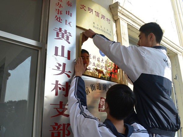 为了进一步拓宽文法系学生工作领域,加强学生实践基地建设,10月25日,文法系组织部分师生来到泰山区泰前街道黄山头社区参加了大学生社会实践基地和青年志愿者服务基地挂牌仪式。泰山区团区委书记张磊、泰前街道党工委副书记耿超和校区(学院)团委书记戴东宝等、泰前街道团组织代表和文法系40余名师生参加了活动。