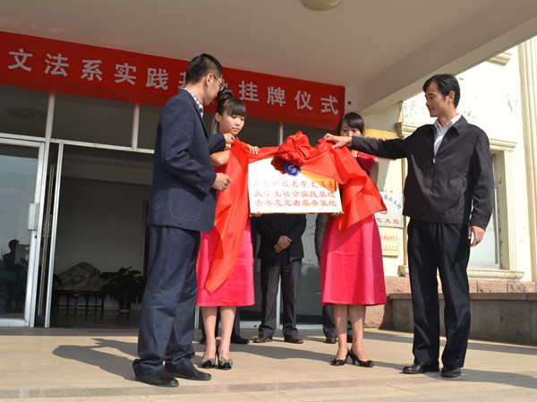 校区(学院)团委戴东宝书记和泰山区团区委张磊书记共同为实践基地揭牌。