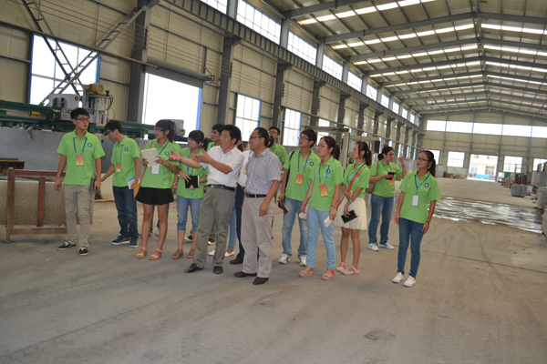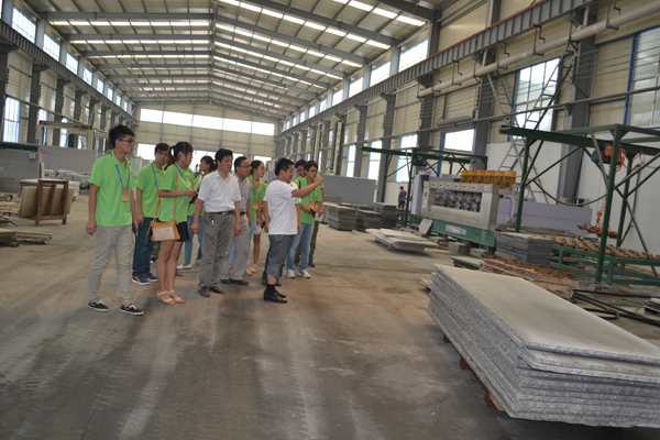 8月18日下午,实践团成员来到石材加工企业进行参观,详细了解企业污染源及治污新技术。大家深入到企业加工车间,孙书记和王老师给同学们详细讲解每一个加工过程,以及如何减少粉尘,实现水资源循环利用和锯底泥如何收集处理等。