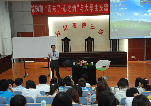 5月28日,由文法系团总支、学生会承办的第54期“青未了·心之约”与大学生交流对话会活动在模拟法庭成功举行。本次活动邀请了我校校友、山东省煤炭技术服务有限公司董事长刘福广与同学们进行交流,交流围绕大学生如何进行心理调频展开。