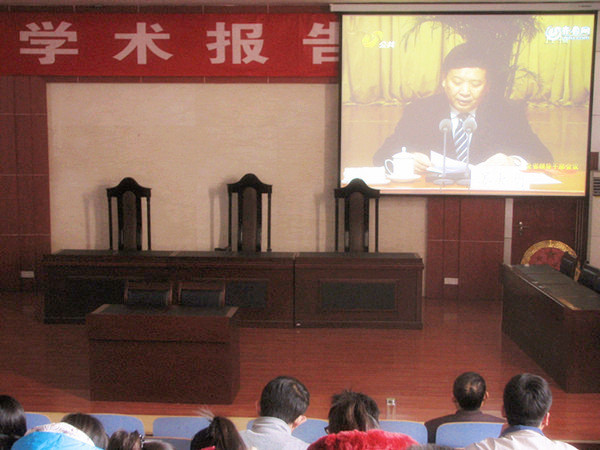 山东省政协主席刘伟首先对十八大和十八届一中全会的会议精神向与会的人员进行了传达,特别对山东省在会议期间的主要任务、主要会议进行了介绍。接着山东省省委书记姜异康对两个会议的意义及怎样贯彻会议精神做了详细说明。姜异康强调,十八大的召开对中国将来的发展具有承前启后继往开来的重要意义,要认真研读十八大报告、党章和其他重要文件,加深对一系列重大理论和实践问题的认识。现场师生认真观看了会议直播,对十八大及十八届一中全会的内容有了进一步的了解。