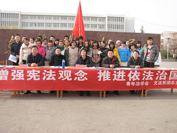 上午10点,文法系联合山东惠锦律师事务所在西校园门口开展普法宣传活动。尽管天气还有点寒冷,但丝毫不影响师生的热情。今年的宣传主题为“弘扬宪法精神服务科学发展”。围绕这一主题,在宣传《宪法》的基础上,重点突出借贷诉讼、消费者诉讼、婚姻诉讼、旅游诉讼等方面的条例及相关格式条款。