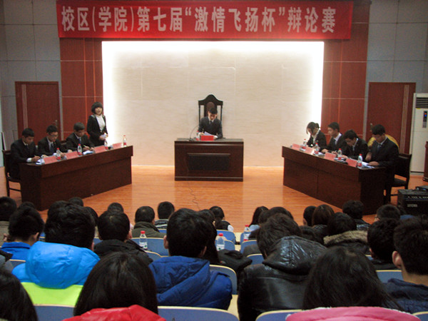 12月11号下午4点,由校区(学院)团委、学生会主办,文法系团总支、学生会和思辨社承办的第七届“激情飞扬杯”辩论赛决赛在西校园模拟法庭成功举行。校区(学院)团委负责老师、文法系团总支负责老师和校区(学院)以及各系学生会干部与120余名同学们共同参加了活动。文法系中文教研室主任史钟锋等老师和各系学生干部代表担任比赛评委。