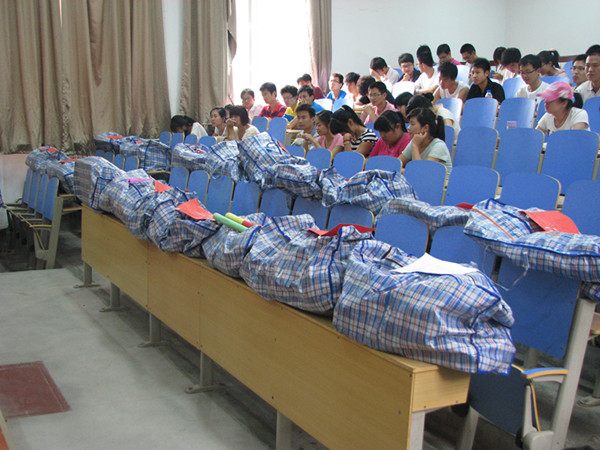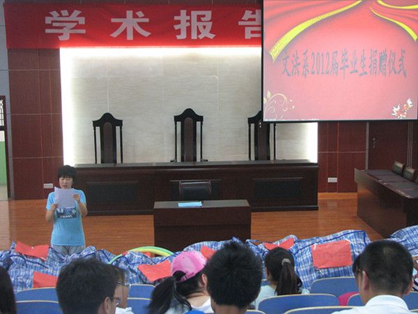 为了传递毕业生同学的爱心,帮助那些在校的家庭困难学生,文法系一年一度的毕业生爱心捐赠活动于6月25日下午在模拟法庭举行。