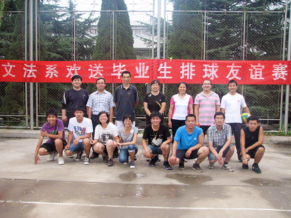 为进一步做好毕业生安全文明离校工作,营造温馨和谐的良好氛围,让毕业生能够心情舒畅地离校,6月26日下午,由文法系团总支、学生会举办的欢送毕业生师生排球友谊赛在校排球场成功举行。文法系副主任王学宁、曲兆良等还上场参加了比赛活动。