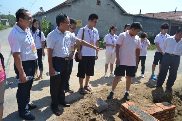 “东陈村的大多数人口都是留守的老人、儿童,大部分青壮年外出务工,但经济收入还是以种地为主”,韩书记介绍道。同学们了解了三个村子的情况后,分别开展了以“关爱留守儿童”、“农村常用法律知识普及”为主体的调研实践。在与村民的交流中,大家知道在各级领导关心支持下,柏油路已经修到了自己家门口。村委办公室和活动场所已经选址,很快就能动工。在前期打地基、买建材等筹备过程中,三位挂职书记不怕吃苦与大家一起劳动,手上都磨出了血泡。有好几位老大娘纷纷把自己家里蒸的大包子送过来,深厚感情可见一斑。