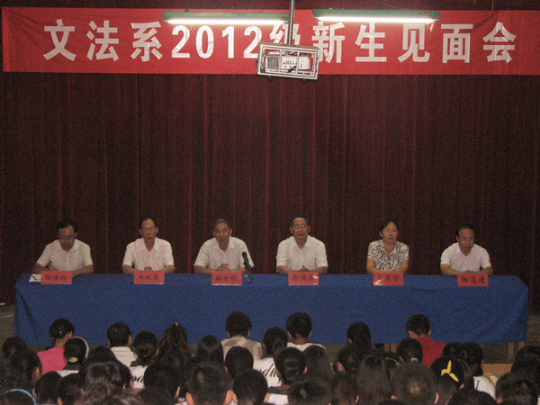 9月2日晚,文法系领导、全体辅导员老师以及系学生组织负责人齐聚八角楼,与2012级新同学们见面,为他们上好大学的第一课。见面会由文法系团总支书记郭涛林主持。