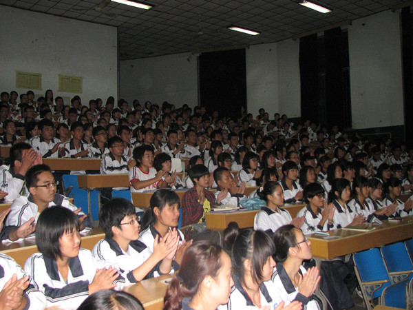 见面会共分两个阶段,第一阶段文法系党总支书记马福泉首先对新生的到来表示欢迎,他说:文法系一贯以“一切为了学生 为了学生一切”为工作理念,依靠优秀的教学团队和管理队伍,培育了文法系和谐上进的良好风气,近几年学生学风浓厚,教风优良,新同学们应当继承文法系的好传统,努力为建设更加优秀的文法系做贡献。接下来系主任张学银祝贺同学们成功步入大学学习,并给大家提出了几点希望和要求:要探索新的学习方法,树立明确目标,养成良好的作息习惯,努力实现“六会”,即要“学会做人,学会做事,学会学习,学会合作,学会审美,学会健身”。