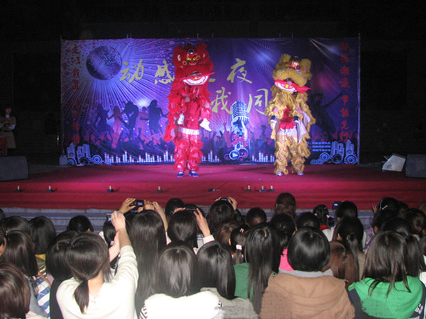 演出在炫酷的街舞中正式开幕,本次文化广场的演出内容充分体现了文法系“文以载道法以传情”的主题特色,在为同学们提供了丰富多彩的娱乐节目的同时,也饱含深刻的教育意义。当晚的节目上,来自文法系的学院两届十佳歌手杨莹与徐聪聪同台飙歌,为观众们献上优美的歌曲;文法系武术协会、绿洲节能协会成员和泰安市高兴舞狮团合作的精彩舞狮表演赢得了观众们的阵阵喝彩,把晚会的气氛推向了高潮;此外,还有文法系青年法学会带来的诗歌朗诵、信息系相声小品大赛最佳创意奖小品、PS街舞俱乐部的街舞表演、英语协会的李小鱼口语秀、商务协会的歌曲联唱以及蓝调舞协的带来精彩节目。在最后的互动环节中,台上的演员与场下的观众携手跳着广场舞,晚会在动感的音乐中落下帷幕。