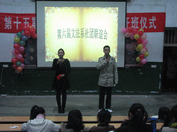 11月11日晚7:00,文法系社团联谊会在八角楼准时开幕,文法系辅导员老师刘明远、宿秀平以及经管系辅导员老师包万杰作为特邀嘉宾前来观看了节目。