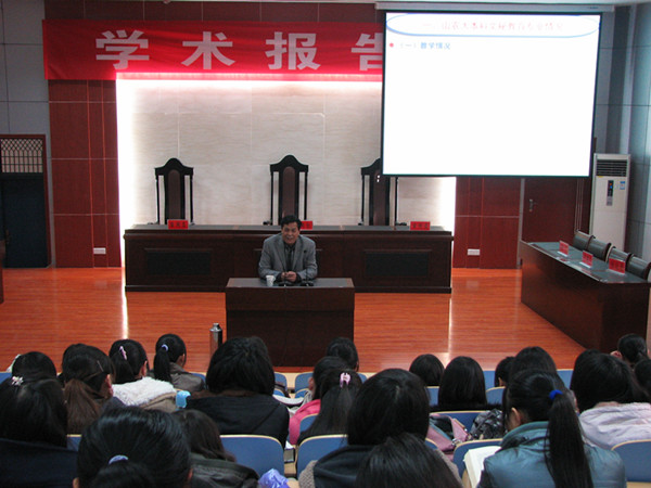 11月17日,山东农业大学文法学院李成武教授应邀来我校为文秘教育专业学生做专题报告。李成武教授从事秘书理论与实务课程的教学研究近20年,对文秘专业学生的职业规划和就业指导有很深入的研究,他就当前文秘专业毕业生的就业形势、发展前景等问题与我系文秘专业的全体同学进行交流。