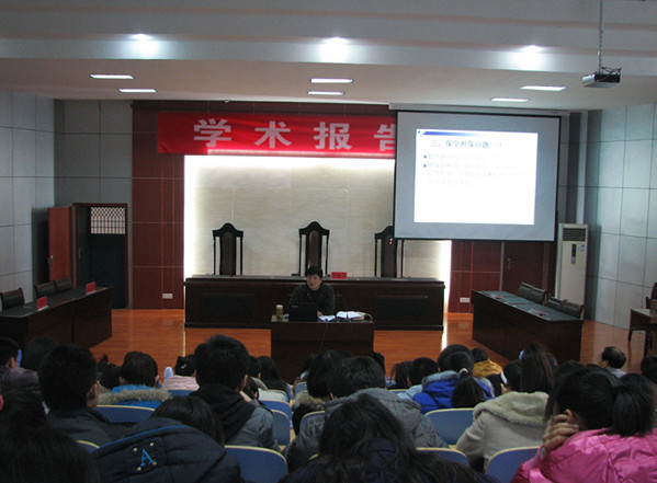 为巩固法学班同学的专业知识,提高对法学学习的积极性,增强同学们的实践意识,能够学以致用,11月29日下午,文法系邀请了泰安市中级人民法院立案庭副庭长张宗强为法学班同学做了“我国财产保全制度”的专题报告。