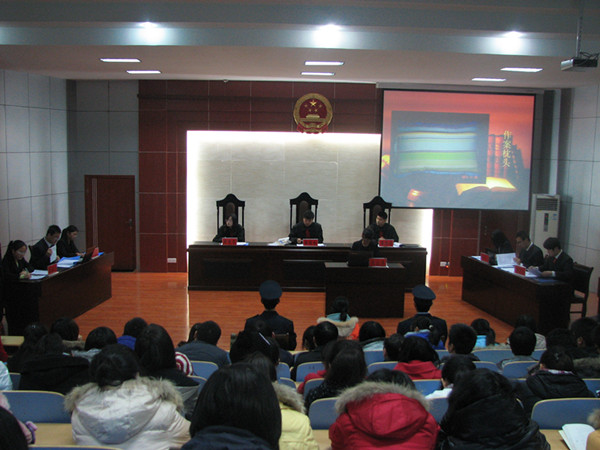 为了进一步提高法学专业学生的学习积极性,增强实践应用能力,做好普法宣传工作,11月30日晚,由文法系青年法学会在模拟法庭成功举办模拟审判活动。文法系团总支书记郭涛林、法学教研室主任刘辉、李兆利和团总支刘明远老师应邀参加了此次活动。