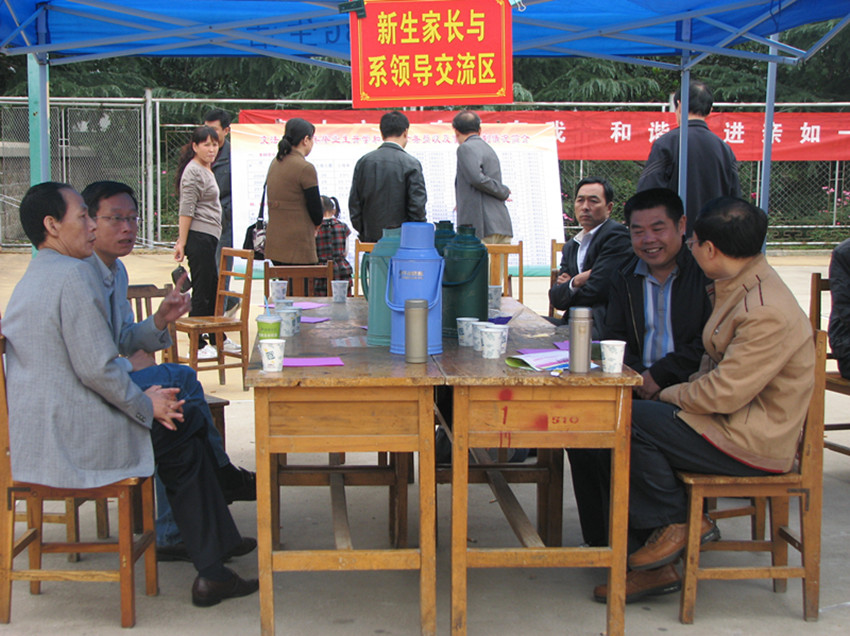 虽然持续了一个星期多的阴雨天气还未放晴,但也丝毫阻拦不了同学们开展迎新工作的热情。参加迎新的高年级同学们各负其责,热情高涨,为新同学提供了热情周到的“一站式”服务,帮着提行李、拿被褥,引导办理手续,最后送到宿舍。为了进一步加强与学生家长的沟通,结合校庆做好学校和文法系的宣传工作,文法系首次设立了“新生家长与系领导交流区”。交流区设在文法系迎新点,为陪同新生前来报到的家长提供了一个临时休息和与系领导咨询、沟通交流的场所。在交流区内,桌上精心放置了热水瓶、一次性纸杯和文法系印制的《新生入学安全提示》、《致新生家长的一封信》等宣传材料,四周为文法系迎新宣传展板。前来咨询的学生家长络绎不绝,交流之余家长同志都仔细观看迎新展板,尤其是对文法系近几年培养的优秀毕业生典型事迹非常感兴趣。文法系党总支书记马福泉、系主任张学银、系党总支副书记裴国栋、系副主任王学宁、曲兆良和郭笃凌等一早就来到迎新现场,系领导分别向学生家长介绍校区(学院)的情况和文法系的办学特色,希望通过学校教育引导、家庭持续关注支持和孩子自身的努力,让孩子尽快适应大学生活,热爱自己所学的专业,最终成为优秀的大学毕业生。系领导和老师耐心地解答家长、新同学提出的问题,了解学生情况。新生家长和同学均对文法系提供的热情周到的服务给予较高评价。(作者:吕博涵)