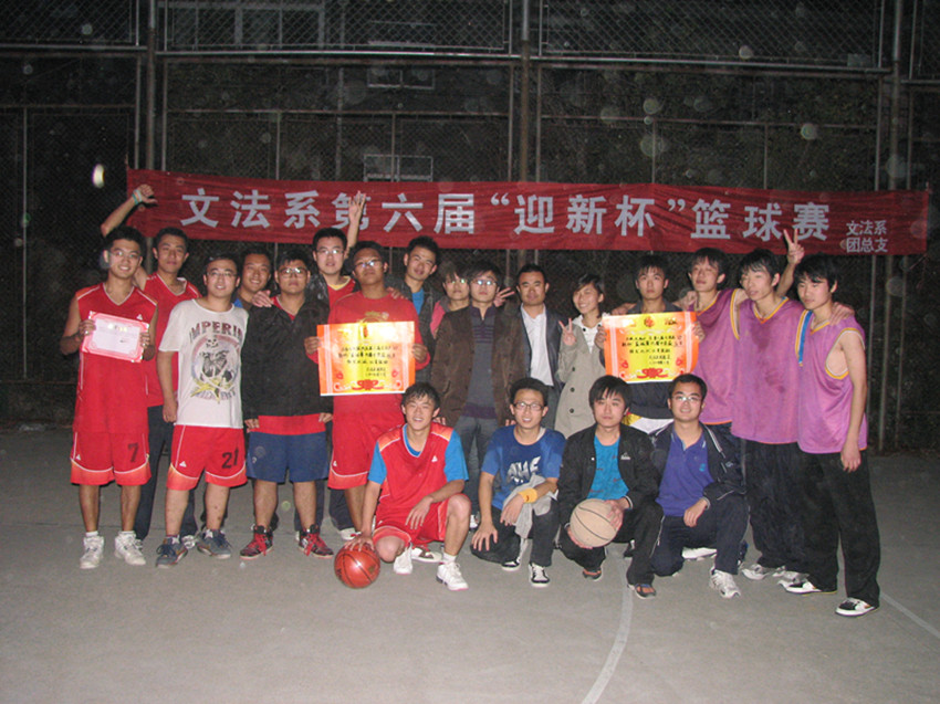 由文法系团总支、学生会举办的第六届迎新杯篮球比赛,经过7天的激烈竞争,终于在10月26日下午圆满落下帷幕。最终,法学09联队以一分的优势险胜文秘10联队,问鼎此次比赛的冠军。