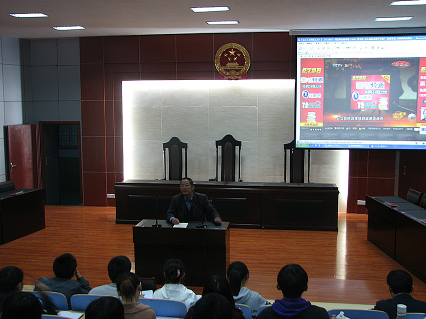 为了深入学习胡锦涛总书记“七一”重要讲话精神,让广大学生党员和学生干部更好地了解当前普遍关注的热点焦点问题,10月27日晚,文法系党总支书记马福泉在模拟法庭为同学们上了一次生动的党课,文法系学生党支部书记郭涛林、全体学生党员、发展对象和部分入党积极分子以及各班级主要学生干部参加。