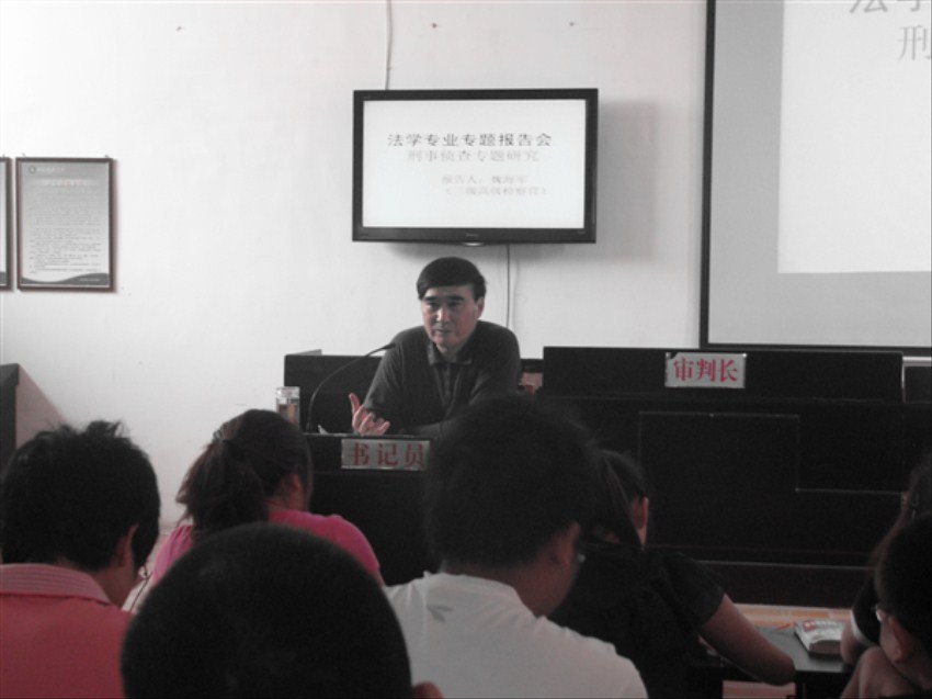 据悉,此次邀请魏海军作报告只是文法系加强社会实践,挖掘第二课堂,提升综合素质的有益尝试。目前,仅理论知识而缺乏实践经验成为学生就业的一大障碍,文法系为帮助学生增加实践经验,在正常实习期外还开设第二课堂如模拟法庭等活动,并邀请法律实务人员来校作报告,帮助学生了解专业,为将来就业打下良好基础。(作者:王媛 摄影:杨喜荣)