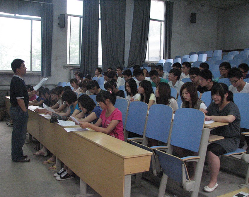 近日每天下午4点半,在1#B101的教室里隐约传来了阵阵悠扬的歌声,原来是文法系的师生合唱团正在进行合唱排练,引得行人纷纷驻足观看。在近期结束的红歌合唱比赛中,文法系学生的演唱实力有目共睹,更值得一提的是,本次这支师生合唱团的学生表演者均来自文法系,由50余名不同班级的学生共同组成。这支合唱团将为我校即将到来的“60年校庆典礼”献上自己诚挚的礼赞。文法系学生从6月27日下午就开始了紧锣密鼓的合唱排练,学生表演的排练工作由文法系教师桂自品担任指导,“动听和悦耳才是衡量歌唱比赛的标准”,他以专业的标准严格要求同学们,并为同学们认真示范了《走向复兴》与《凝聚每一分爱》两首演唱曲目,跟随着老师情绪饱满、雄浑激扬的嗓音,同学们用心体会着积极向上的音乐内涵,几次练习过后很快就进入了和声练习阶段。