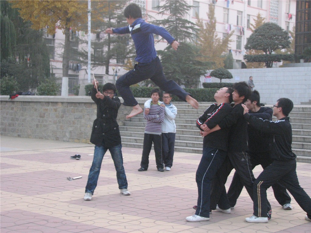 为了给广大的武术爱好者提供展示能力和特长的平台,丰富同学们的课余生活,11月10下午,文法系武术协会在礼堂前广场组织了主题为“强身健体 武动人生”的武术汇演活动。