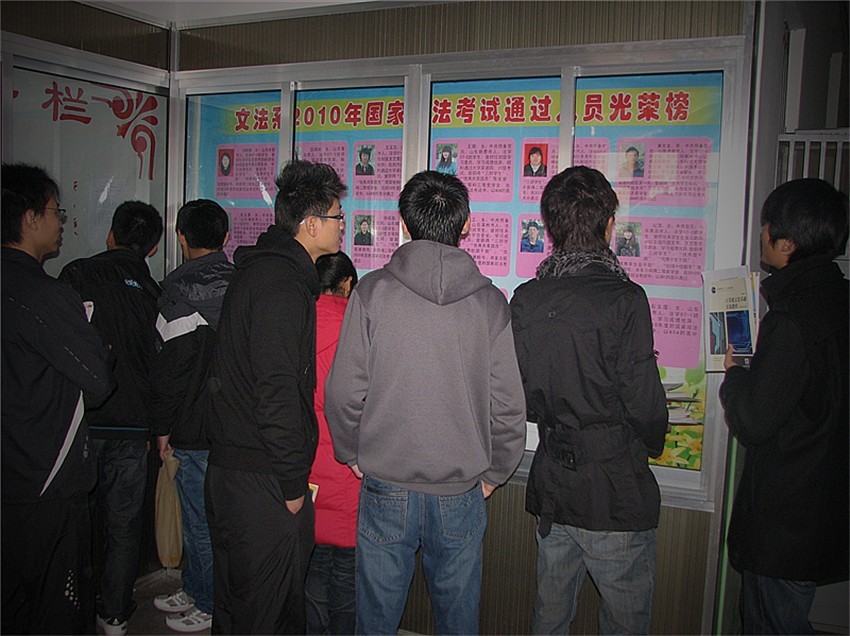 11月20日,素有“中国第一考”之称的2010年全国司法考试成绩公布,文法系学生再创佳绩。近日,文法系制作了通过司法考试学生的先进事迹展览,加大司法考试宣传动员工作力度,鼓励更多的学生加入到司法考试的队伍中来。