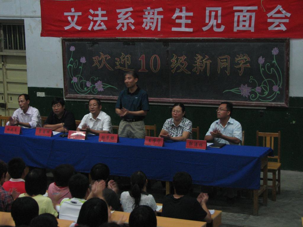 9月12日下午,文法系领导、全体辅导员老师以及系主要学生干部齐聚八角楼,与212名2010级新同学们见面,为他们上大学的第一课。