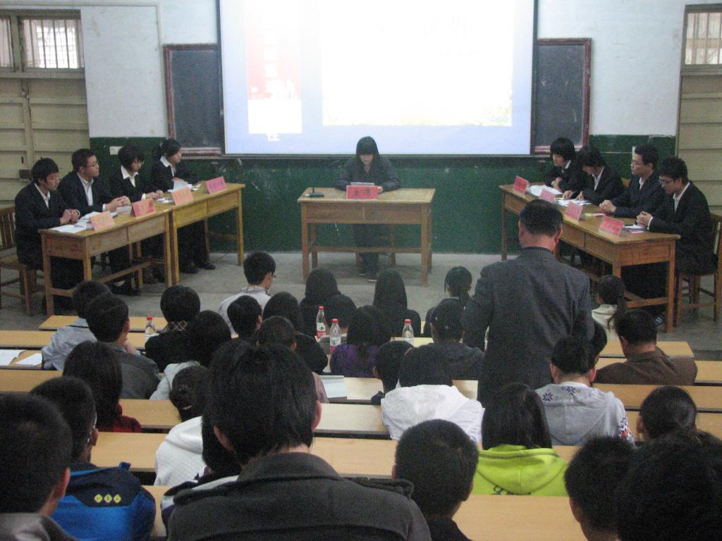 为培养同学们的逻辑思维能力,提高应变能力,文法系思辩社于10月25日下午在八角楼举办了本学期首场辩论赛,文法系党总支副书记裴国栋、团总支书记郭涛林及辅导员老师到场观看,并对活动进行指导。