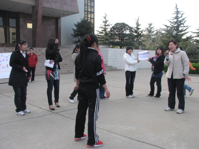 4月13日下午,文法系英语协会主办的“默契大比拼 快乐学英语”活动在礼堂前成功举行。