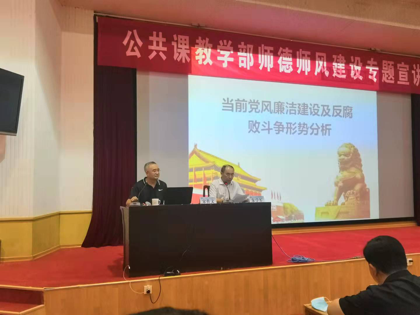 为深入学习贯彻习近平总书记系列重要讲话精神,推进党史学习教育走深走实,全面提升我部教职工思想政治素质和职业道德水平,9月28日下午,必赢3003no1线路检测中心邀请学校“山海泉”廉政宣讲团成员、校纪委副书记宋传文在4号楼报告厅作党风廉政和师德师风建设专题宣讲会,宣讲会由必赢3003no1线路检测中心主任朱学军主持,学部全体教职工参加了会议。