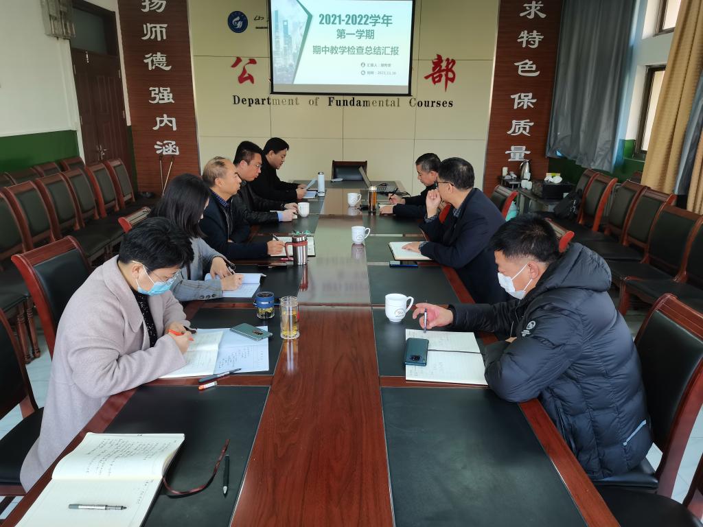 会上,郭秀荣从常规性教学工作、重点检查工作、特色亮点工作、存在问题等几个方面对期中教学检查工作进行详细汇报,并就“五大基地”建设开展情况进行重点介绍。随后,由亓慧坤和吕亚男分别从思政课教学、实验室建设和科研工作进行汇报。