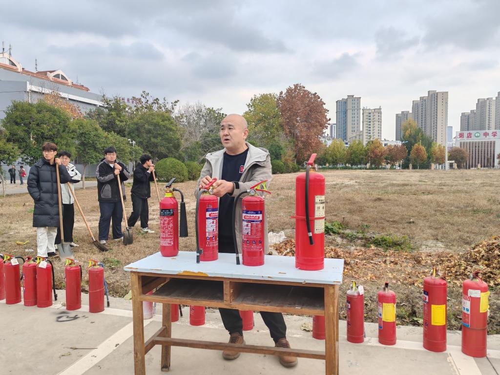 安全管理部工作人员向大家详细介绍不同类型灭火器的适用范围、检查方法,并对如何正确使用灭火器进行现场教学演示,参训教师纷纷手提灭火器,体验了一把实操灭火。