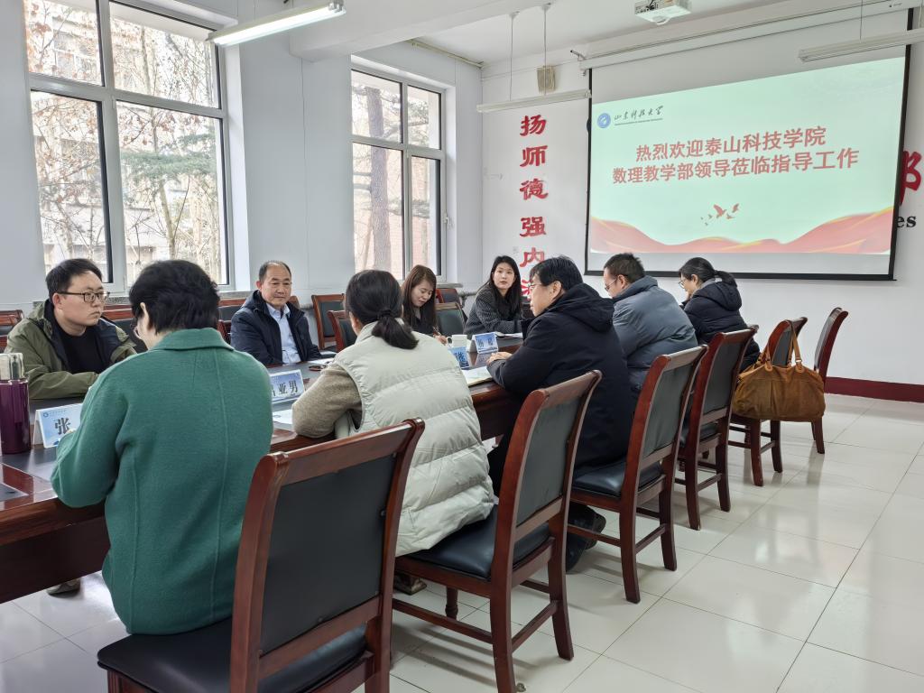 3月5日,泰山科技学院数理教学部主任焦方雷一行来我单位交流学习,学部党委副书记兼副主任裴国栋、副主任吕亚男及学部数理系主要负责同志接见了客人,并进行了座谈交流。