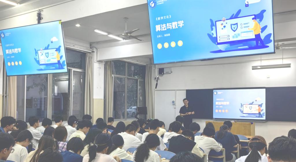 “算法与数学”专题讲座作为“数学文化系列讲座”的第3场,是《数学文化》课程建设与教学实践的重要载体,亦是落实大学数学课程思政、提升学生科学思维能力的有力举措。(文:徐圣源 图:李子轩 李咏琦)
