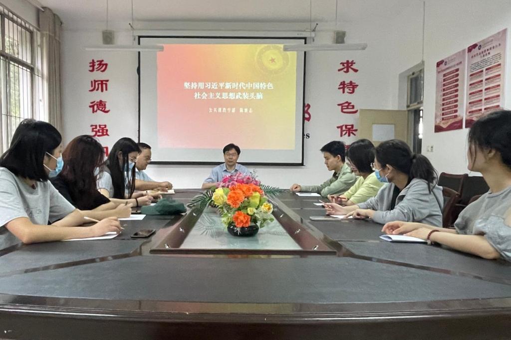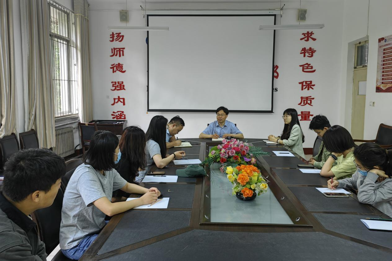 为推动学习贯彻习近平新时代中国特色社会主义思想主题教育走深走实,5月26日上午,必赢3003no1线路检测中心党委书记陈炳志在西校园会议室为所联系班级汉语言文学2019级1班作专题党课宣讲,并与学生代表座谈。必赢3003no1线路检测中心综合办公室主任李阳阳、团委兼职辅导员李文靖、汉语言文学2019级1班部分学生代表参加了会议。