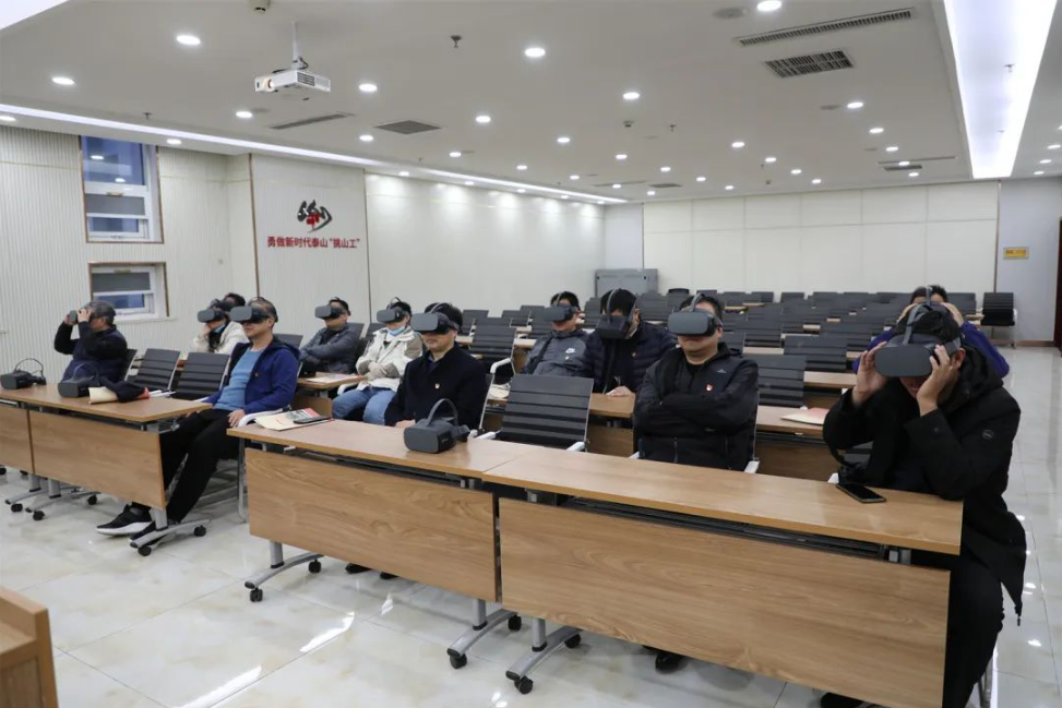 最后,党员们在活动中心体验了现代化的VR设备。通过身临其境式地观看VR视频《中共一大会址纪念馆》,聆听了中共一大的历史和中国共产党人的初心故事,深刻感悟建党光辉历程和伟大革命精神,并在观影结束后进行了热烈的交流研讨。