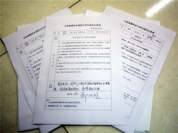 文法系特别重视学生日常管理工作,在工作中体现“严实”精神,建立了辅导员谈心谈话档案,分类管理,及时跟踪,不断提升工作水平。(文:曹贝 孙欣 图:王雪)