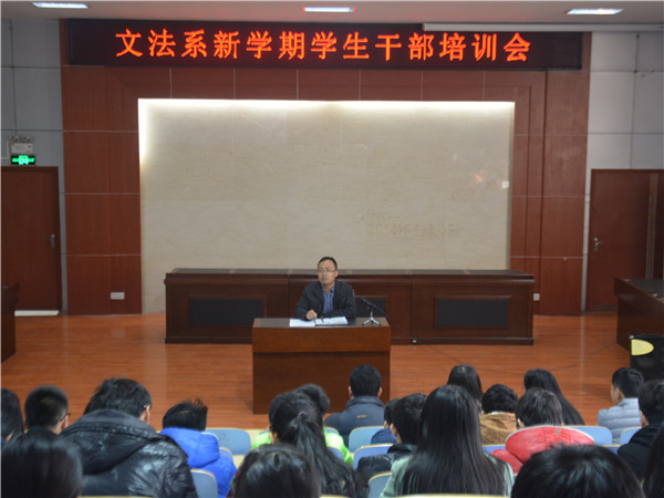 为进一步加强学生干部综合素质,保障新学期学生工作顺利开展,2月28日,文法系在模拟法庭召开新学期学生干部培训会。文法系团总支全体辅导员老师、各班班长、团支书和学生组织主要学生干部、学生兼职辅导员及团总支干事参加了此次会议。