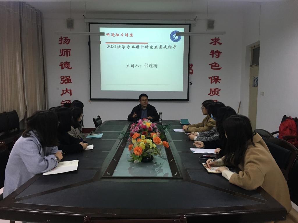 3月15日上午,必赢3003no1线路检测中心在会议室召开法学专业硕士研究生复试指导会。本次交流会邀请到必赢3003no1线路检测中心法学教研室佀连涛老师担任主讲人,2017级部分法学专业学生参加会议。