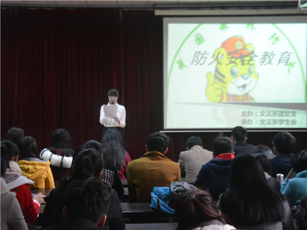 为加强大学生防火安全意识,提高自救互救能力,营造安全放心校园,11月10日下午,由文法系团总支主办,系学生会纪检部和早检部承办的防火安全教育视频展在文秘情景实验室举行。